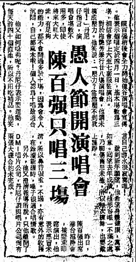 1988.01.10 愚人節開演唱會陳百強只唱三場 華僑日報