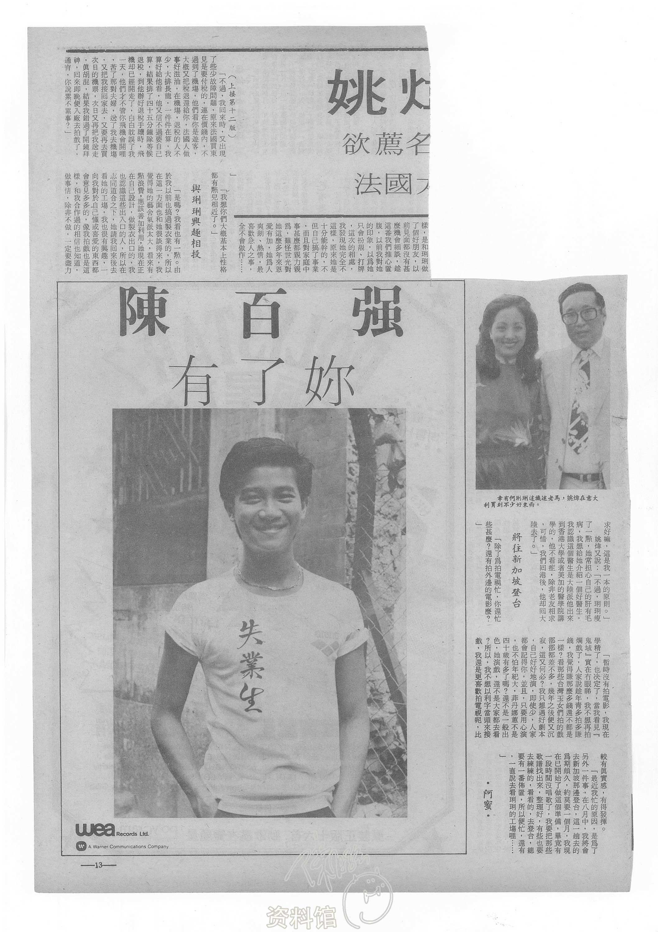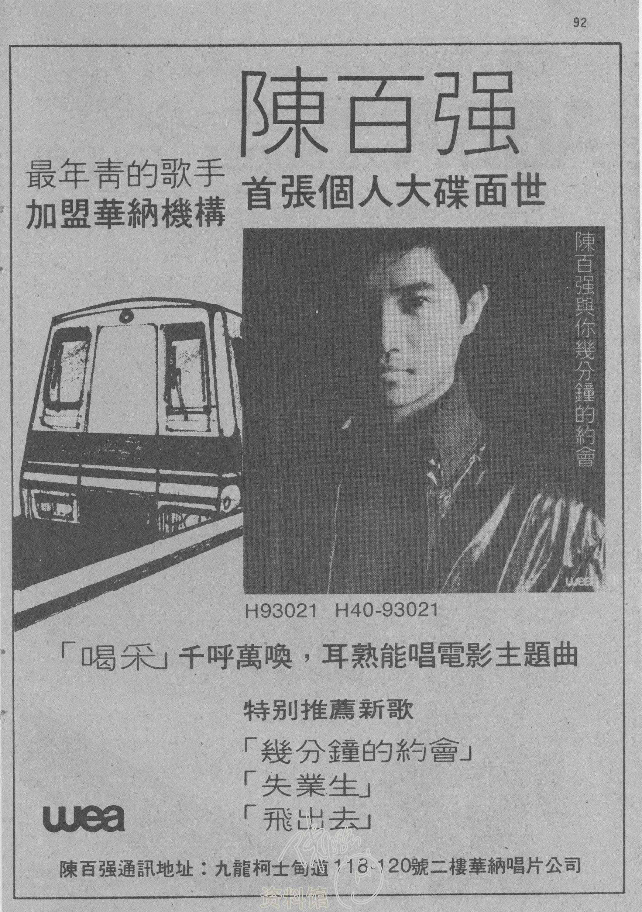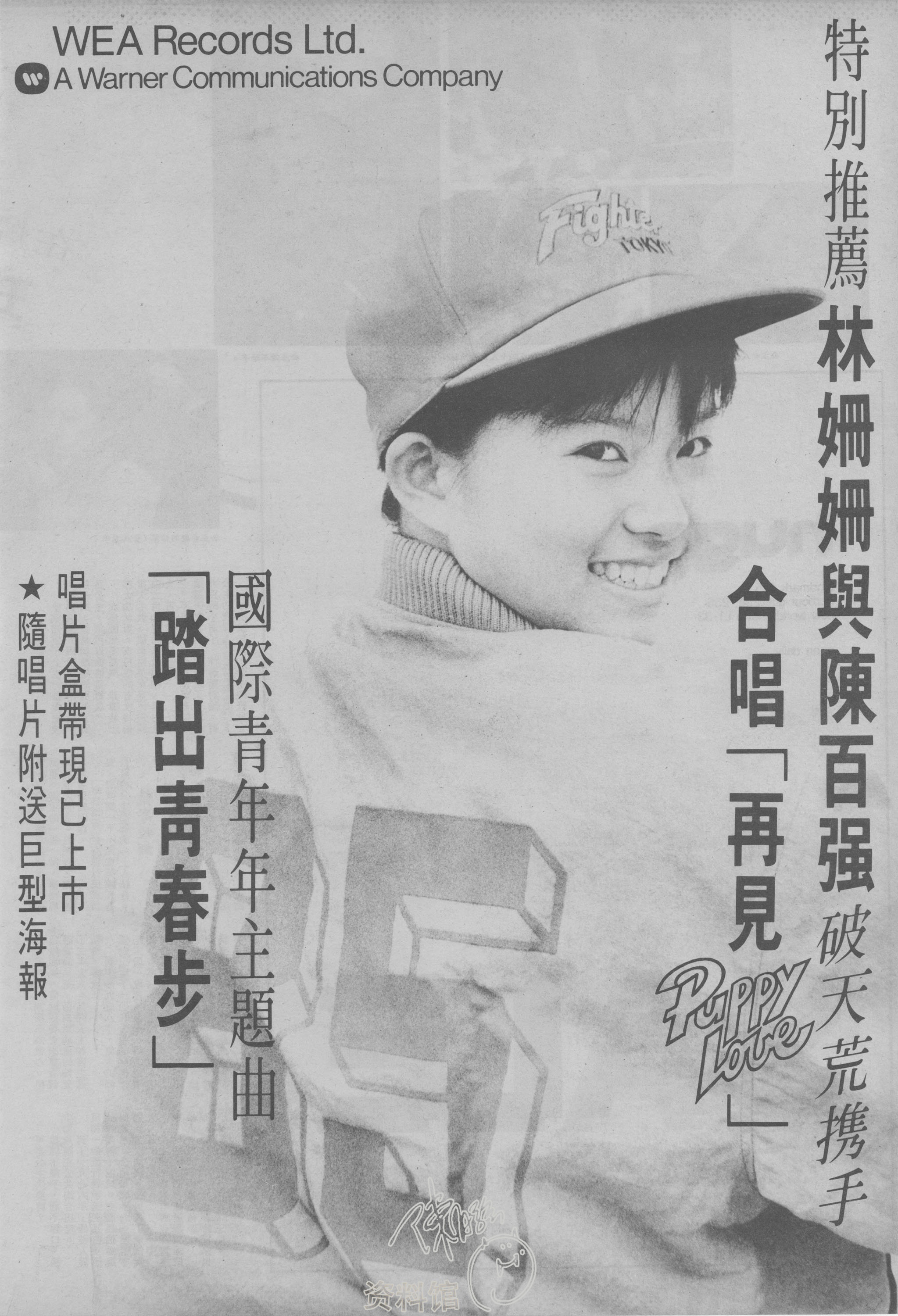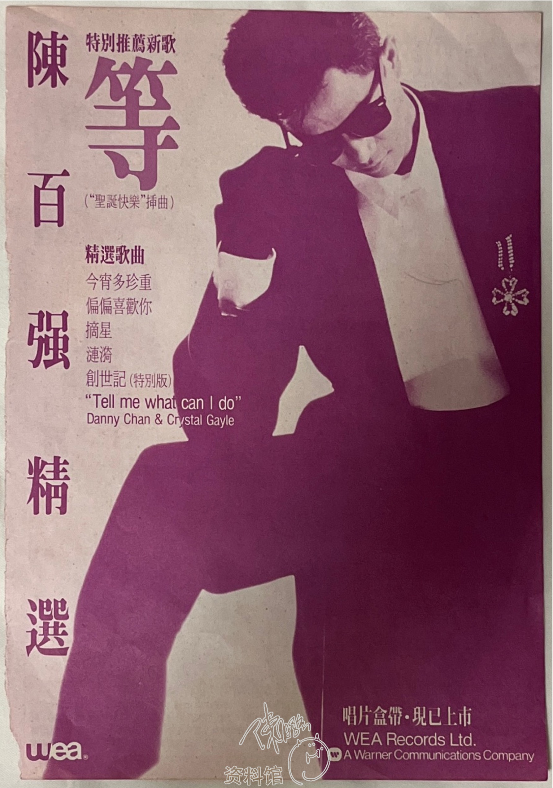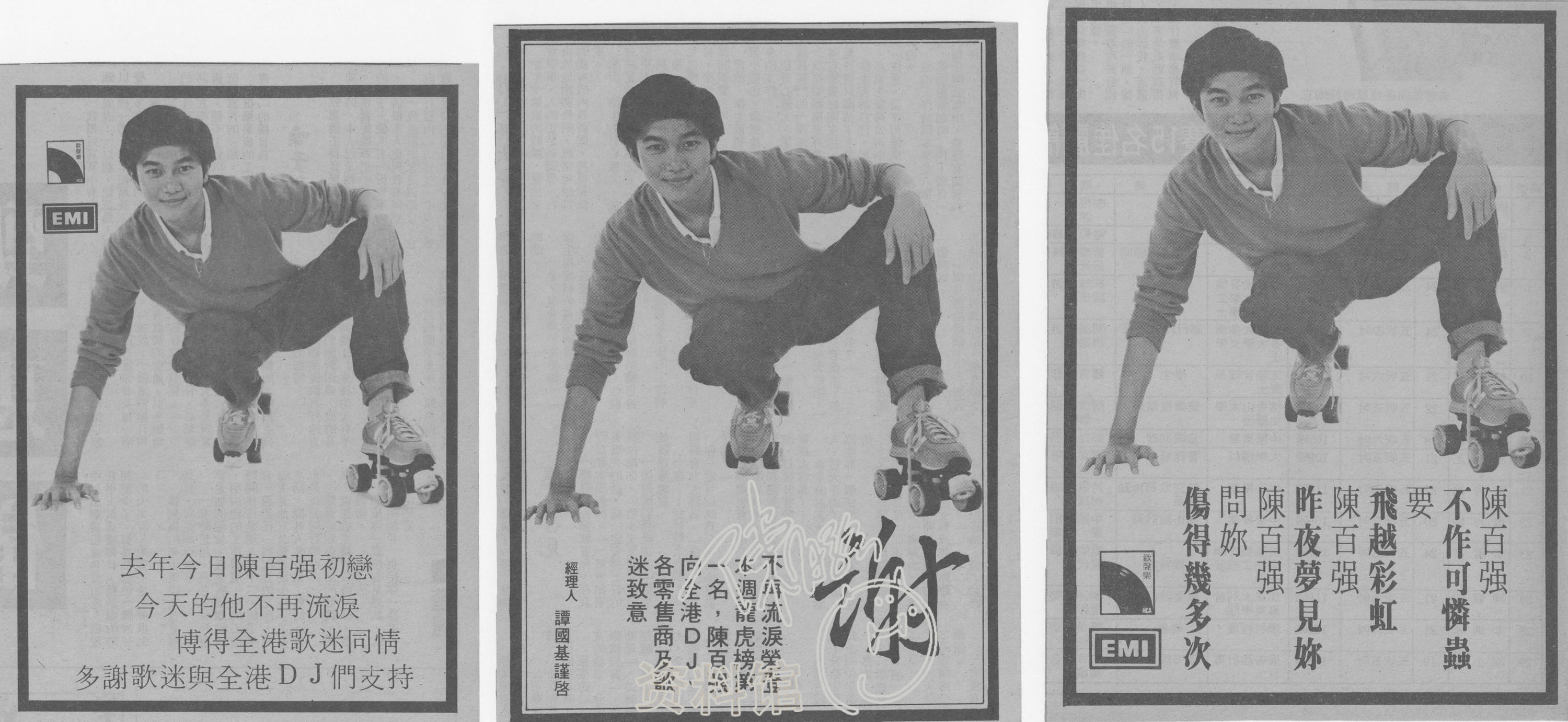 专辑上市宣传广告文件扫描:特别鸣谢MV、Kathy Lai Ho Yan。1979 眼泪为你流(First Love) 1980 山叶吉他大赛总决赛 1980 不再流泪 1980 几分钟的约会 1981 有了你、(电影:失业生) 1982 突破精选 1982 倾诉 1983 偏偏喜欢你 1983 陈百强演唱会 1984 电影 圣诞快乐 1984 百强‘84 1985 合唱曲目“再见Puppy Love” 相关文章:1 1985精选《等》 SONY DSC 页码: 1 2 3 4 5