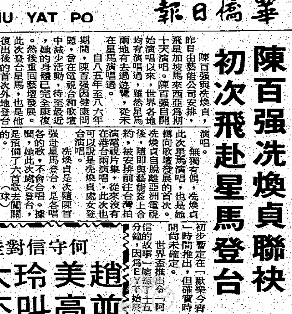 1986.05.14 陳百強冼煥貞聯袂 初次飛赴星馬登台 華僑日報