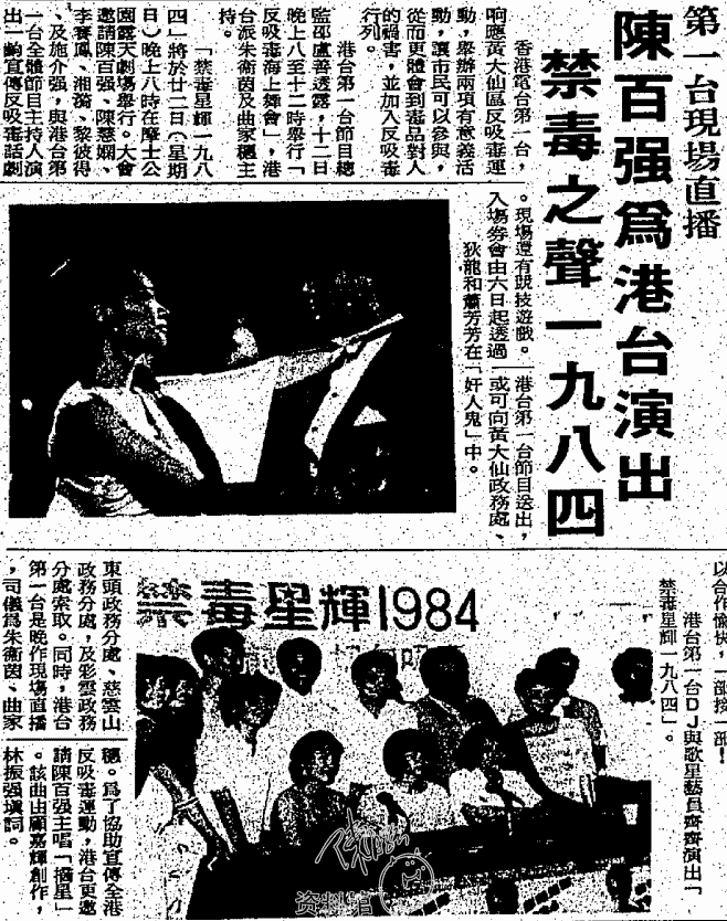 1984.07.05 第一台現場直播 陳百強為港台演出 禁毒之聲一九八四 華僑日報